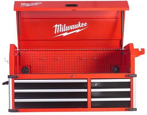 45 kg-ig terhelhető, lágyan záródó fiókok Minden fiók csúszásgátló betéttel van ellátva Felső munkafiók laptop használatához Zárható biztonsági fiók az értékes tárgyak (telefon, kulcsok, dokumentumok) biztonságos tárolására. Sarokvédők ütődés ellen Mágneses elosztó lehetővé teszi az akkumulátorok töltését közvetlenül a szekrényen. Szerszámtároló oldal