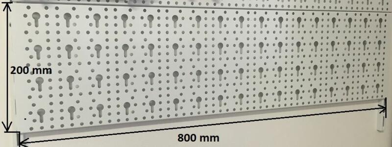 A lemezt az Element System falsínekkel lehet a falra rögzíteni. A lemezek két végén kiképzett akasztóhorgok segítségével egyszerűen felhelyezhetők a hátfalak a falsínekre. Ezáltal nem kell annyi helyen megfúrni a falat, ráadásul mobil marad a rendszer, könnyen átalakítható. Méret: bruttó szé x ma: 800 x200 mm ( a perforált lemez szélessége a szimpla falsínekkel együt