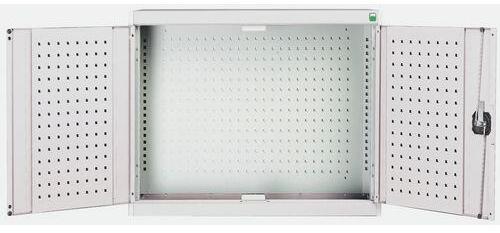 Függesztett fémszekrény perforált hátfallal. A szekrény perforált hátlapja szerszámtartók elhelyezésére (perfo típus) vagy műanyag dobozok felakasztására (zsalu típus). Szekrényajtó perforált belső oldallal szerszámtartók elhelyezésére ( perfo típusú). dobozok és szerszámtartók nem képezik a szállítás részét.