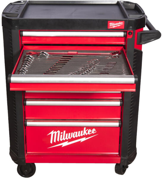 45 kg-ig terhelhető, lágyan záródó fiókok és 90 kg-ig terhelhető alsó fiók. Eldőlés elleni védelem - egyszerre 1 fiók nyitható. 5 feltöltött fiók alapvető szerszámokkal habbetétekbe rendezve. A készlet tartalma: 1/4", 3/8", 1/2" racsni és dugókulcs készlet habbetétben, 194 részes (4932498518) MAX BITE csillag-villáskulcs készlet habbetétben, metrikus 27 részes (49324