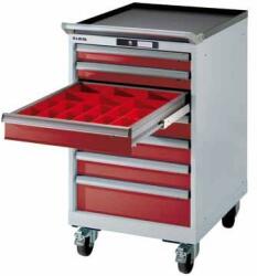 Fiókos szerszámtartó Terhelhetőség: 75 kg/fiók Méret: 99x56,4x72,5 cm Szín: szürke RAL 7035 Fióktípus A: 2 db 75 mm Fióktípus B: 4 db 100 mm Fióktípus C: 1 db 150 mm További információk:Ipari acél szerszámkocsi Ez az ipari szerszámtartó megbízható társa lesz, hogy a munkakörnyezetét áttekinthetően és tisztán tudja tartani. A szerszámtartó erős acéllemezből kész