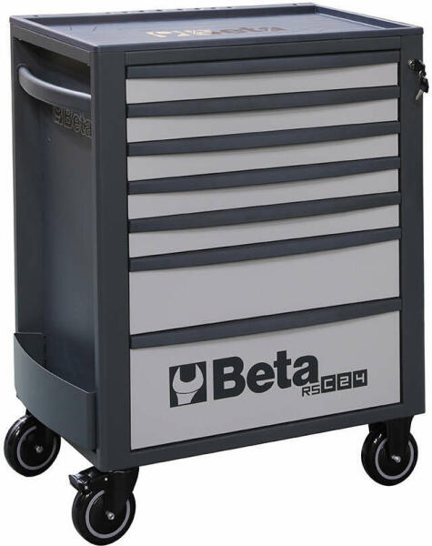 BETA RSC24/7-G 7 fiókos szerszámkocsi, szürke7 fiókos szerszámkocsi A C24S szerszámkocsi evolúciója! Megerősített munkalap és számos praktikus kiegészítő 7 különböző színkombinációban kapható Új ABS erősítésű munkalap, az RSC22, RSC23, RSC23C és RSC23T szerszámszekrényhez. Fő jellemzők: 7 teljesen kivehető, teleszkópos, csapágyazott fiók, 588x367 mm: 5 fiók, 7