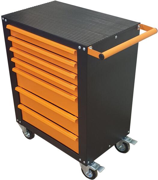 Leírás Masszív, erős tartású üres szerszámos szekrény A szerszámos szekrény könnyű mozgatásról két szabadon kormányozható és két fékezhető kerék gondoskodik A szerszámos kocsi fiókjai csapágyazott sínekkel vannak ellátva, teljesen kihúzhatóak így átlátható annak tartalma Tökéletesen átláthatóan tárolhatóak a szerszámok és szerelési kellékek 600x390mm s
