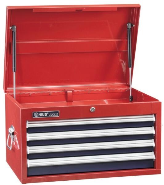 Központi záras szerszámos láda 4 fiókkal, és 1 tároló rekesszel. A felső tároló teleszkópos és védőszivaccsal felszerelt. 1 nagy és 3 kisebb fiókja görgős, védőszivacs betéttel bélelt. A szekrény oldalán erős, strapabíró fogantyú található. A láda ráhelyezhető, tökéletesen illeszkedik a TS-465P és a TS-467P szerszámosszekrényre. Méretek:Teljes: 655x450x390mm