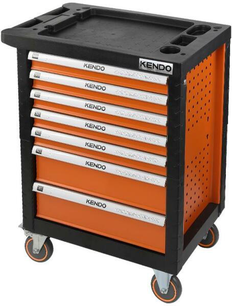 Masszív és erős acéllemezből Perforált oldallemezzel Olajálló felső tálca tárolórekeszekkel Oldalfogantyúval Nagy teherbírású, fékezhető, csapágyazott kerekekkel ellátva 100%-ban kihúzható fiókok Csapágyazott fióksínek Központi zárszerkezet Szerszámkészletek robusztus, fújt műanyag betéttálcákban Max. terhelhetőség: 175kg Cikkszámszélesség (mm)mélység (mm)