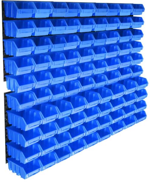Tartsa rendben garázsát vagy műhelyét ezzel a falra szerelhető panelekből és tárolódobozokból álló szettel. A rakásolható dobozokkal rendelkező praktikus állvány számos tárolási lehetőséget kínál apró tárgyak, például csavarok, szögek, anyák, aljzatok, szerelvények stb. számára. A 6 tömör fali panelen 90 doboz helyezhető el, amelyek az apró alkatrészek könnye