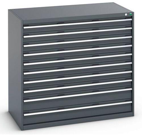Bott Cubio fiókos szekrények 200 kg teherbírású fiókokkal és 100%-ban görgős csapágyakkal bővíthető. Magas hegesztett acél konstrukció 1,5 tonna teherbírásig, porszórt bevonattal. Központi zárrendszer és több nyitás blokkolása fiókok egyszerre. Ergonomikus fogantyúk feliratos szalaggal, zárás hengerzárral két kulccsal.