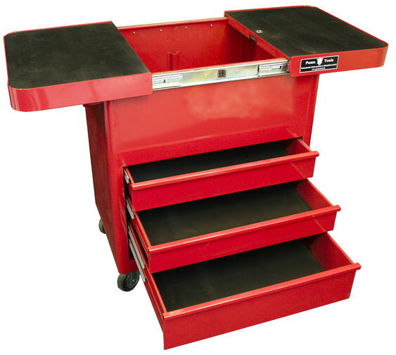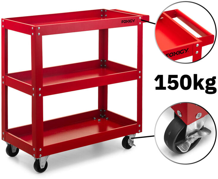 A műhelykocsi nagyon fontos tartozék minden műhelyben. A szerszámos kocsiban való rendszerezésnek köszönhetően a munka gyorsabb és hatékonyabb lesz. A szerszámkocsi három polccal rendelkezik a szerszámok és alkatrészek tárolására . A szekrény négy fékkel ellátott kerékkel van felszerelve. A kocsi kompakt méretekkel és kis súllyal rendelkezik, így bármikor és bárhol k