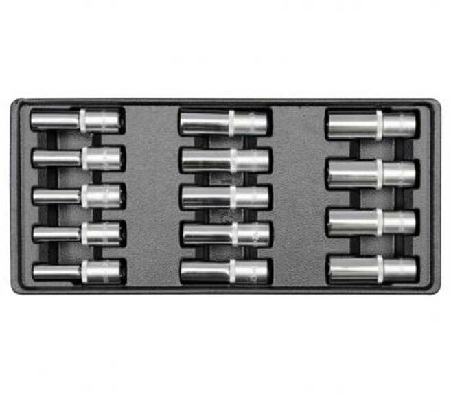Szerszámoskocsi fiók műanyag fiók hosszú dugókulcsoknak Hosszú dugókulcsok 76 mm ( 8, 9, 10, 11,12, 13, 14, 15, 16, 17, 18, 19, 20, 21 mm) CrV 50BV30 EAN: 5906083955396