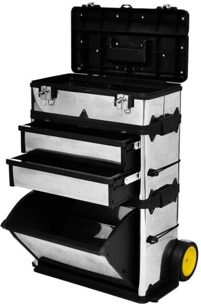 3 részes Gördülő Szerszámos Doboz Ez a szerszámos doboz tökéletes berendezés mindazok számára, akiknek gyakran kell utazniuk szerszámaikkal, de egy kiváló mobilitású központosított hely szerszámai vagy művészeti kézműves tartozékai számára. 3 elkülöníthető összetevőből áll: a hagyományos szerszámos láda, a 2 fiókos rekesz, illetve a tágas alsó doboz. Ez a pr