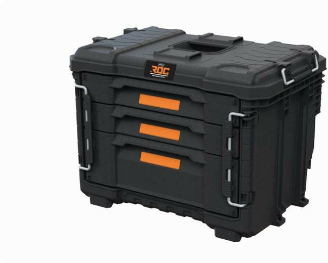 Doboz 3 fiókkal, 1 nagyobb és 1 kisebb fiók levehető elválasztóelemekkel, narancssárga keretekkel a tartalom feliratozásához. Teljes teherbírás 20 kg. Halmozható, moduláris kialakítású. Biztonsági ütközők a fiókok kilökődésének megakadályozására. Tedd rendbe a szerszámaidat a praktikus Keter szerszámosládával. Használd a 2 sekély fiókot és 1 mélyebb fiókot a k