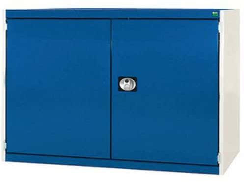 Fém műhelyszekrények polcokkal, 160 kg teherbírással. Megerősített szárnyas ajtók perforált belső oldallal a szerszámok tárolására. Magas hegesztett acél konstrukció akár 1,5 tonna teherbírással, porszórt felülettel. Zárás központi zárral hengerzár két kulccsal. . 25 mm-es lépésekben állítható magasságú horganyzott polcok.