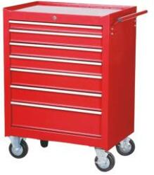 Robusztus tömör acéllemezből készült, porszórt festéssel 7 teljesen kihúzható fiókkal (golyóscsapágyazott) Munkafelület Fiókok csúszásmentes felülettel Központi hengerzárral 2 kormányozható kerék rögzítőfékkel Hosszúság: 616 mm Szélesség:330 mm Magasság: 742 mm Súly: 23 kg