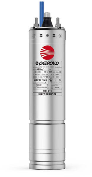 Pedrollo 4SR 1/20 S-PD Négy colos homoktűrő búvárszivattyú csőkút szivattyú. Minőségi, tartós, megbízható Pedrollo 4SR 1/20 S-PD búvárszivattyú fúrt kútba, 200 g/m3 homoktűrő képességgel, háromfázisú motorral. A Pedrollo legújabb fejlesztésű 4 colos búvárszivattyú családja a Pedrollo 4SR-S széria. A magas ménőségű alapanyagok, a gondos tervezés, a precíz és