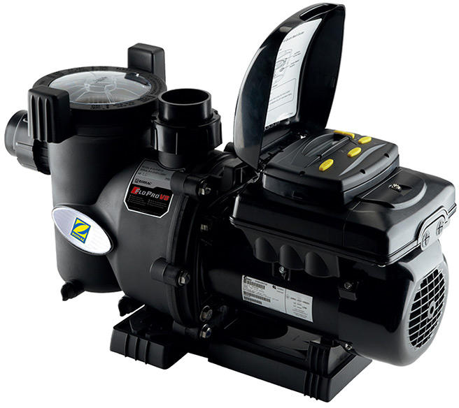 Zodiac FloPro VS AUT változtatható sebesséű szivattyú 24m3/h 1,23kW, 230V II Zodiac FloPro? VS és FloPro? VS AUT önfelszívó, kiemelkedő hatékonyságú vízforgató szivattyú. IPX5 védelem, maximum vízhőmérséklet 35°C, IE3 villanymotor 3450 RPM. Alkalmas édes és sós (max:6g/liter) víz keringetésére. Automatikuls lekapcsolás túáram esetén. Víz csatlakozás 63/50mm, holla