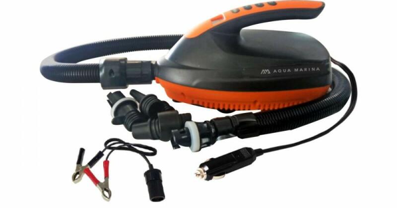 A praktikus és kompakt Aqua Marina elektromos szivattyú hatékony segítség útközben. Az Aqua Marina 12 V-os szuperautó jó választás a vízi sportok szerelmeseinek. Az elektromos szivattyú maximális nyomása 16 PSI. Az evezőlapokhoz vagy felfújható csónakokhoz és kajakokhoz tervezett fekete és narancssárga színű szivattyú kompakt, és kényelmesen elfér az autóban. Kompakt m