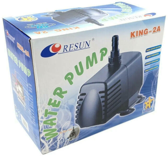 1500L/H szivattyú, Alkalmas akváriumokba, kerti tavakhoz, szökőkutakhoz, vízesésekhez. Resun Vízpumpa KING-2AFeszültség: 220~240V FREQ : 50/60Hz Fogyasztás : 20W Teljesítmény : 1500 L / óra Emelési magasság : 2mSzivattyú kivezetés átmérő: 13, 19 mm1?, 3/4" Forgórész, rotor : Az ellenálló kerámia tengelyhosszú életet biztosít Jellemző:Gyantába épített biztonságos, m