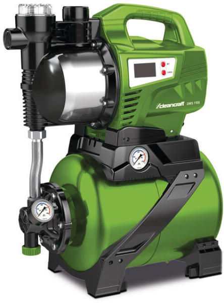 Tisztítás technológia > Víz szivattyúk > Kerti szivattyú, vízrendszerCleancraft DWS 1105 háztartási vízmű - szivattyú (7522200) - 135519DWS 1105 – Házi vízmű előszűrővel és digitális kijelzővel - Alkalmas a kert öntözésére és nyomásnövelésre a háztartásban - Energiatakarékosság: A víztartály 24 liter vizet tárol, és ezáltal kisebb a vízigény - Intell