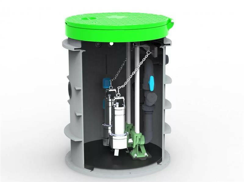 RoPump Ø800 x 1200 50 év garancia RoPump két szivattyúval 2 x DAB FEKA VS 1000 with rail and coupling kit A ROTO RoPump szivattyútelepeket alacsonyabban fekvő épületek szennyvíz átemelésére alkalmazzák, ahol a gravitációs vízelvezetés nem lehetséges, ezért magasabb csatornába vagy tisztítótelepre kell szivattyúzni a keletkező szennyvizet. A szennyvíz az esetk nagy többsé