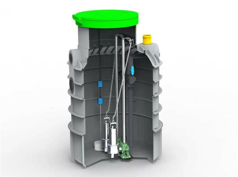 RoPump Ø1200 x 2300 50 év garancia RoPump két szivattyúval 2 x DAB FEKA VS 1200 with rail and coupling kit A RoPump DN 1200 szennyvízátemelő szivattyútelepek a magasságkülönbségek kiegyenlítésére szolgálnak, és kommunális szennyvíz szivattyúzására szolgálnak. Felszereltség: függőleges tartály, búvárszivattyúk talppal, szintkapcsolók, visszacsapó szelepek, elzáró s