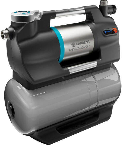 A GARDENA nagy teljesítményű, hatékony 5600 SilentComfort háztartási vízrendszere a ház és a kert vízellátásának fontos része. Lehetővé teszi esővíz vagy kútvíz használatát a kert öntözésére vagy használati vízként a lakásban, például WC-kben vagy mosógépekben. A szivattyú minden funkciója, mint például az indítás vagy a leállítás, akár 10 méteres távo
