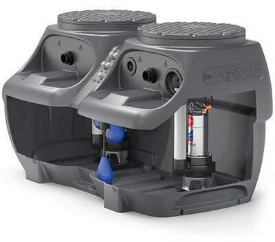 Pedrollo SAR 550-TR 1,5 Átemelő telep szennyvízre 550 literes műanyagtartállyal szerelve. Pedrollo SAR 550-TR 1,5 komplett megoldás a tisztavíz és szennyezettvíz és szennyvíz elvezetésére, két szivattyús kialakítással. Vágókéses, darálós szennyvízszivattyúval. FIGYELEM! 400V-os HÁROMFÁZISÚ SZENNYVÍZSZIVATTYÚ A Pedrollo SAR 550 szennyvizes átemelő telepek komplett me