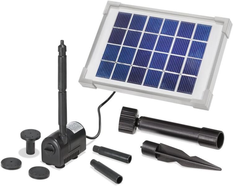 Napelemes szökőkút szivattyú rendszer, Rimini S 4 különböző szóráskép beállítás Max. szállítási magasság 0,7 m Max. szállítási teljesítmény 175 l/óra Csatlakoztatásra kész rendszer krisztallin napelem modullal, földbe szúrható cövekekkel és jó kopásállóságú elektronikus merülőszivattyúval. A mellékelt felszálló csövekkel és fúvóka készlettel 4 külö