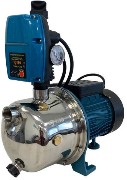 Házi vízmű - Házi vízellátó szivattyú hétvégi házak, családi házak és ipari létesítmények vízellátására. , Csőcsatlakozása: 1", Szívási mélység: 8 m, Emelő magasság: 50 m, Szállítási teljesítmény: 60 l/perc, Teljesítmény: (230V) 1100 W, Gyártó: IBO Lengyelország