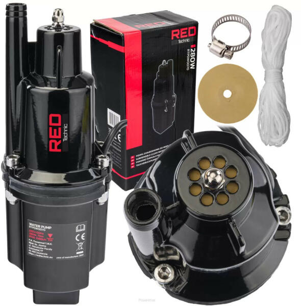 FELSŐ SZÍVÁSÚ MEMBRÁNSZIVATTYÚ 280W MŰSZAKI ADATOK Teljesítmény: 280 W Tápellátás: 230 V / 50 Hz Teljesítmény: 1080 l/h Max. vízellátás: 70 m Max. merülési mélység: 7 m Max. vízhőmérséklet: 35°C Szivattyú kimenet (belső menet): 1/2" Szivattyú kimenet (csonk átmérője): 3/4" Szivattyú átmérő: 100 mm Ház védelmi fokozat: IPX8 Tápkábel: 10 m Nettó súly: 3 kg A