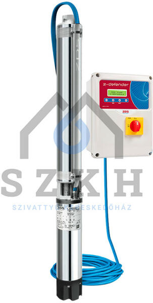 Rendelésre, a szállítási idő 2 hét! 4"-os komplett csőszivattyú: ZDS hidrofejjel, háromfázisú vízkenéses, tokozott ZDS HT-motorral, többféle hosszúságú kábellel A Z-DEFENDER. 3 egy olyan innovatív kapcsolódoboz, amely elindítja, működteti és megvédi a háromfázisú ZDS-szivattyúkat nagyon sokféle, a telepítés és a működtetés során keletkkező hibáktól. Külön
