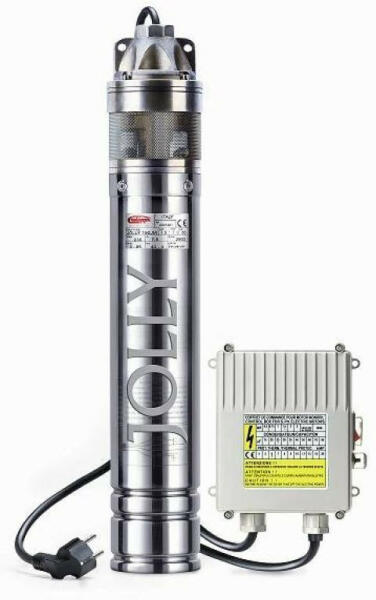 Cadoppi Jolly 150-4" mélykútszivattyú. 230 V/1.100 W, 2400 l/h, 100 m max. emelési magasság (10 bar) nyomás, súly 13 kg, 1"-os csatlakozó, 4"-os átmérő. Kábelhossz 15 m. Rozsdamentes acél szűrőház (AISI 304) és tengely (AISI 430), motorház rozsdamentes acél (AISI 304), sárgaréz járókerék. 4"- 99 mm szivattyúátmérő / 110 mm kútátmérőtől telepíthető. Max. homoktart
