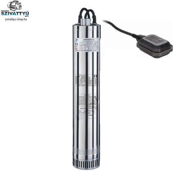Adatok:Feszültség:230VTeljesítmény P2:750WMax Vízszállítás:100 liter/percMax Emelőmagasság:50 méterNyomócsatlakozás:1 collSzivattyú átmérő:98 mmElektromos kábel hossza:25 méterHomoktűrőképesség:50 g/m3Max meríthetőség:10 méterOptimális munkapont:25 méteren 70 liter/percLapátkerék anyaga:TechnopolimerLapátkerekek száma:5 dbTengely anyaga:AISI 304 rozsdamentes acélS