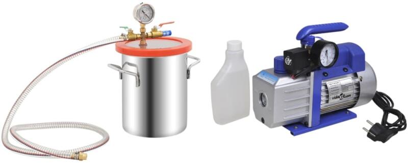 vidaXL vákuumkamra egyfokozatú szivattyúval 5,5 L Ez a praktikus, szivattyúval ellátott vákuumkamra kiváló választás gáztalanítási műveletekhez, vákuumkapszulázáshoz és sok egyébhez. Prémium minőségű anyag: A rozsdamentes acél anyagnak köszönhetően a vákuumszerszám kopás- és nyomásálló. Jobb megfigyelés: Az átlátszó akril fedél nem hajlik meg a vákuumművele