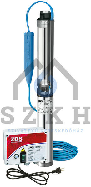 Rendelésre, a szállítási idő 2 hét! 4"-os komplett csőszivattyú: ZDS hidrofejjel, egyfázisú tokozott vízkenéses ZDS H3-motorral, többféle hosszúságú tápkábellel és ZDS CBH indító dobozzal (amely tartalmazza a ki/be kapcsolót, az indító- és működtető kondenzátort és a hőkioldót) A DRP egy olyan elektronikus eszköz, amely a szivattyú tápkábelén található, épp