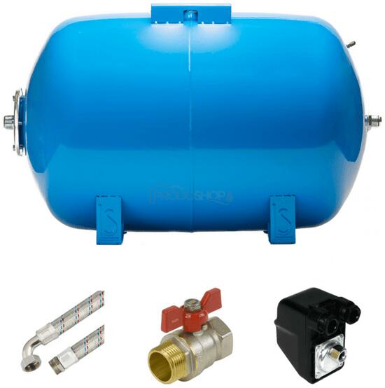 Komplett készlet a vízelosztó rendszerhez való azonnali csatlakoztatáshoz. Vízellátó készlet 100L AQUA OLA vízszintes a következőket tartalmazza: hidrofor tartály 100L AQUA OLA fekve nyomáskapcsoló manométerrel flexi csatlakozó tömlő 70 cm golyóscsap 1" MF pillangó Az AQUA OLA 100l fekvő hidrofor tartály szivattyúzott víz tárolására szolgál főleg házi vízművek, ipa