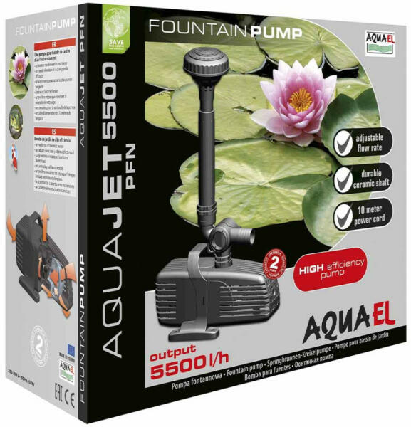 AquaEl AquaJet PFN-5500 : Erőteljes és megbízható szökőkút szivattyú kerti vízi kalandokhoz. Könnyű telepítés, tartós kivitel és változatos beállítási lehetőségekkel, hogy varázslatos vizuális élményt teremtsen kertedben. Álmodoztál már arról, hogy kerted oázisát élettel töltsd meg? Most megteheted ezt az AquaEl AquaJet PFN-5500 Szökőkút Szivattyúval! Ezt a kiv