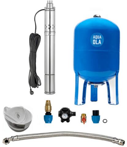 A SQOLA 0.55 rozsdamentes acél orsós szivattyúval ellátott vízmű AISI 304 rozsdamentes acélból készült szivattyúházzal, nyakkal, tengellyel és csavarokkal rendelkezik, 1"-os csatlakozású AQUA OLA 60L hidrofor tartály. Üzemi nyomás 10 bar. Házi vízmű orsóval 3" szivattyú SQOLA 0.55kW (230V) kiváló teljesítményt kínál alacsony áron. A szivattyú akár 68m-es kibocsátá