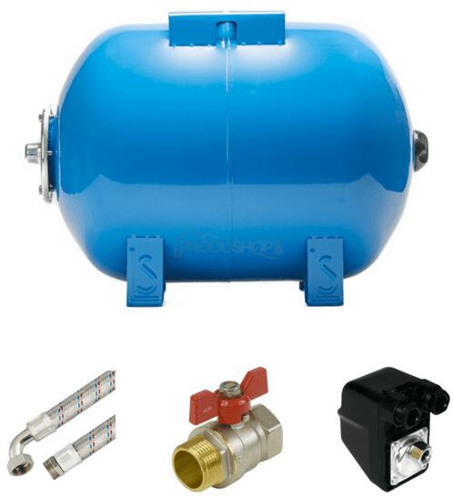Teljes készlet a vízelosztó rendszerhez való azonnali csatlakoztatáshoz. Az 50L AQUA OLA horizontális vízellátó készlet tartalma: hidrofor tartály 50L AQUA OLA fekve nyomáskapcsoló manométerrel flexi csatlakozó tömlő 70 cm golyóscsap 1" MF pillangó Az AQUA OLA 50l fekvő hidrofor tartály szivattyúzott víz tárolására szolgál főleg házi vízművek, ipari szivattyútelepek