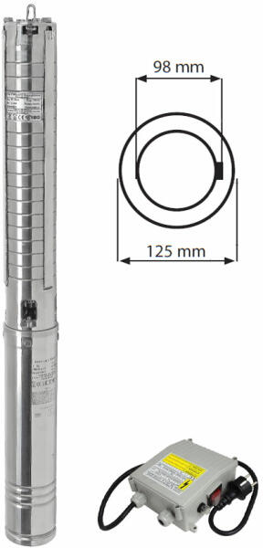 Rendelésre, a szállítási idő 2 hét! 4"-os komplett csőszivattyú: ZDS hidrofejjel, egyfázisú tokozott vízkenéses ZDS H3-motorral, többféle hosszúságú tápkábellel és ZDS CBH indító dobozzal (amely tartalmazza a ki/be kapcsolót, az indító- és működtető kondenzátort és a hőkioldót) Felhasználási területek A szivattyú működése javasolt 4"-os (vagy nagyobb átmér