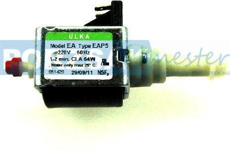 Szivattyú-Vízpumpa Vízbefolyás: 5,5 mm Vízkifolyás: 9 mm Gyártó: Ulka Teljesítmény: 64 W Feszültség tipus: AC Feszültség: 230 V nyomás: 15 bar