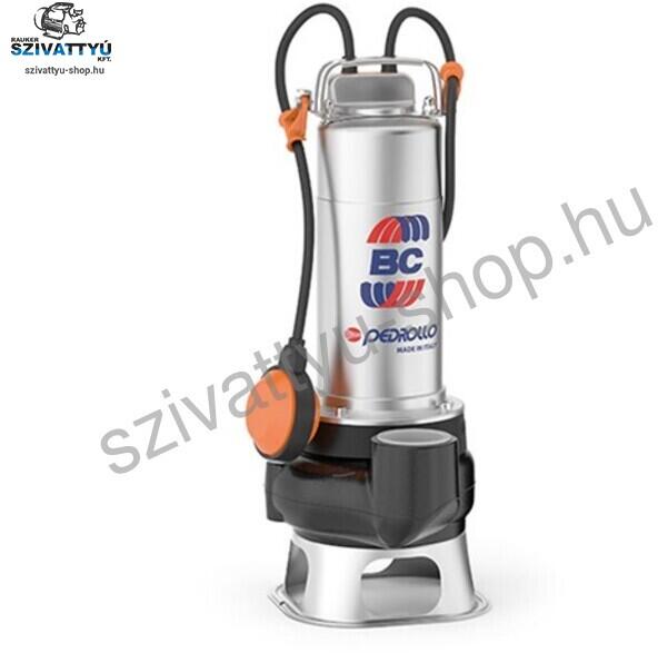 Pedrollo BCm 10/50 (10m) Szabadátömlésű szennyvízszivattyú, lakossági, polgári, és ipari alkalmazásokhoz. Pedrollo BCm 10/50 szennyvízszivattyú AISI 431 rozsdamentes tengellyel, öntvény szivattyúházzal, kétcsatornás járókerékkel, gyári 10 méteres elektromos kábellel. A Pedrollo BC rozsdamentes acélból és kataforézises eljárással öntvényből készült szennyvízsziv
