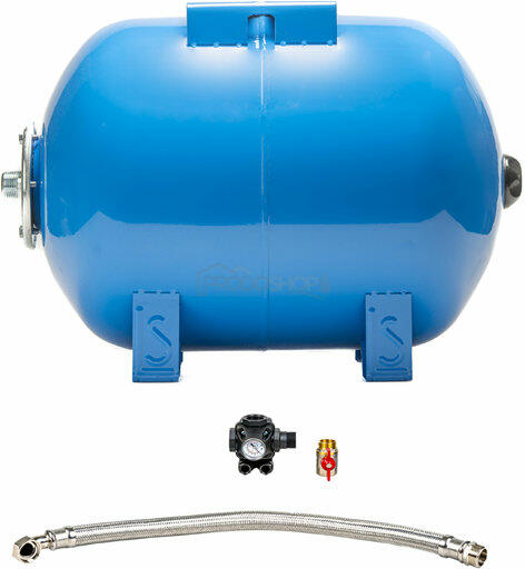 Teljes készlet a vízelosztó rendszerhez való azonnali csatlakoztatáshoz. Az 50L AQUA OLA horizontális vízellátó készlet tartalma: hidrofor tartály 50L AQUA OLA fekve nyomáskapcsoló manométerrel flexi csatlakozó tömlő 70 cm golyóscsap 1" MF pillangó Az AQUA OLA 50l fekvő hidrofor tartály szivattyúzott víz tárolására szolgál főleg házi vízművek, ipari szivattyútelepek