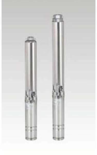 Búvárkútszivattyúk 4-os kutakhoz (DN 100 mm). AISI 304 rozsdamentes acél külső köpennyel és Noryl járókerekekkel. Csatlakozás: csavaros csatlakozás G 1 1/4 - G 2 ISO 228. Szállítási ház beépített visszacsapó szeleppel. Folyadékhőmérséklet 35 °C-ig 4-os motorokhoz Max. homok mennyisége: 150 g/m3 (300 g/m3 magas szilárdanyag és homok százalékos aránya).