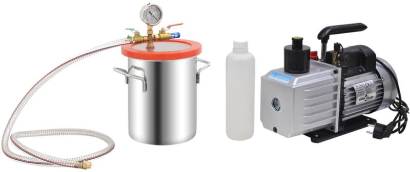 vidaXL vákuumkamra kétfokozatú szivattyúval 5,5 L Ez a praktikus, szivattyúval ellátott vákuumkamra kiváló választás gáztalanítási műveletekhez, vákuumkapszulázáshoz és sok egyébhez. Prémium minőségű anyag: A rozsdamentes acél anyagnak köszönhetően a vákuumszerszám kopás- és nyomásálló. Jobb megfigyelés: Az átlátszó akril fedél nem hajlik meg a vákuumművel