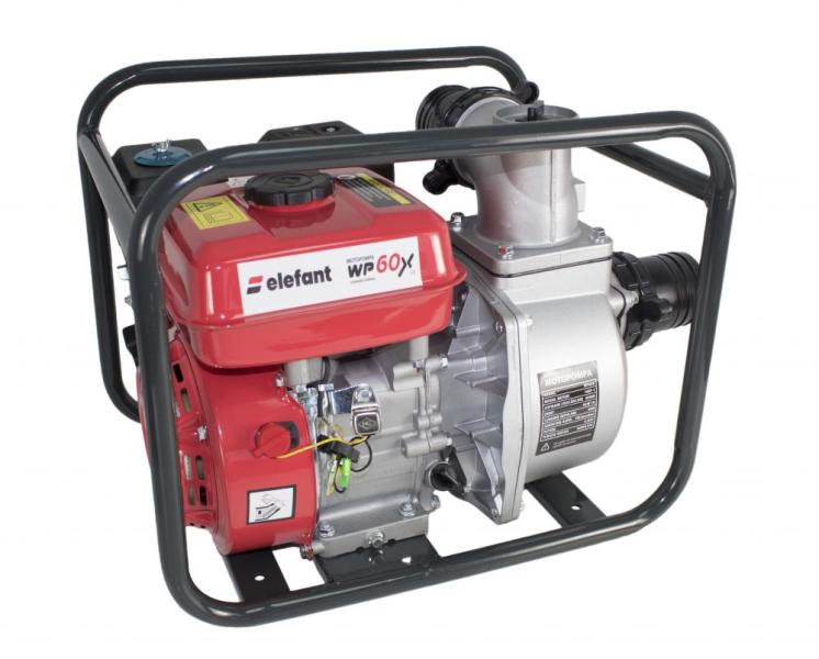 Elefant WP60X benzinszivattyú 4 ütemű motorral, amely 6,5 lóerővel rendelkezik. Ez egy nagy áramlású szivattyú, 3 bemeneti / kimeneti útvonallal. A készlet tömlőcsatlakozásokat és bilincseket is tartalmaz. A működési elv magában foglalja az alapozást, amely minden indításkor a 25 mm-es lyukon keresztül hajtható végre. A motor 4 ütemű üzemmódban működik, és közvetle