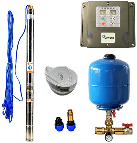 Házi vízmű 3Ti-37 búvárszivattyúval, VESSER frekvenciaváltóval a rendszerben a szükséges nyomás beállításához. A használat: állandó nyomás szabályozása a rendszerben a VESSER frekvenciaváltón keresztül hasznos és ivóvíz szivattyúzása mély és keskeny fúrásokból és kutakból tartályok túlszivattyúzása öntözés és permetezés családi házak, nyaralók, szoci