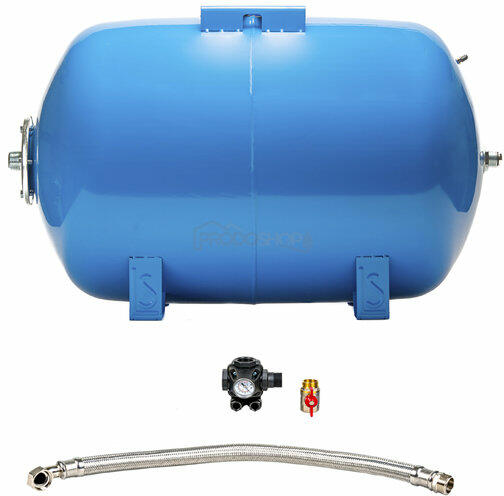 Komplett készlet a vízvezetékrendszerhez való azonnali csatlakoztatáshoz. A 80L AQUA OLA fekvő készlet tartalma: hidrofor tartály 80L AQUA OLA fekvő nyomáskapcsoló manométerrel flexi csatlakozó tömlő 70cm golyósszelep 1 "MF pillangó Az AQUA OLA 80l fekvő hidrofor tartály szivattyúzott víz tárolására szolgál főleg házi vízművek, ipari szivattyútelepek és hasonlók ré