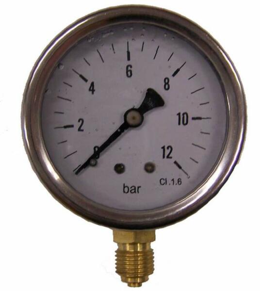 Méréstartomány: 0-40Bar Átmérõ: 63mm-2.1/2" Kivitel: Inox ház Csatlakozás: 1/4" külsõ menet Folyadékcsillapítású (glicerintöltésű) nyomásmérõ