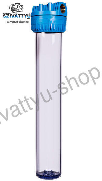 Aqua FP3 20-1 coll szűrőház Poharas szűrőház 20 coll magassággal, 1 colos belsőmenetes csatlakozással. Aqua FP3 20-1 coll szűrőház extra nagy méretben szivattyúkhoz, vagy ivóvízhez. Az AQUA FP3 20-1 coll szűrőház extra nagy méretű szűrőház mindössze 570 mm teljes magassággal ideális az olyan helyekhez, ahol függőlegesben elhelyezhető, beépíthető. Ezt a szűrőháza