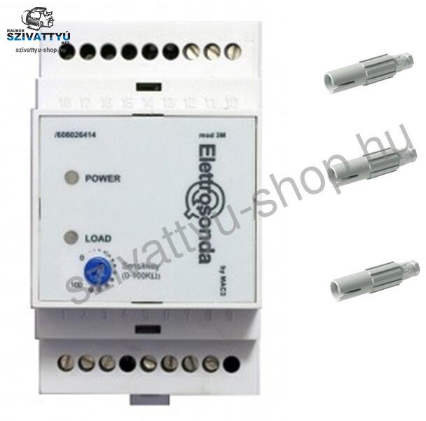 MAC3 Q-SR 230V 3db szondával Szintérzékelő, szintvezérlő szonda 230V-os, 3 db szondaérzékelővel. Ürítő vagy töltő funkcióval. MAC3 Q-SR 230V megbízható szivattyú vezérlés. MAC3 Q-SR ELEKTRONIKUS SZONDA SZABÁLYOZHATÓ ELLENÁLLÁSSAL Az Elettrosonda MAC3 Q-SR egy sokrétű elektronikus szintszabályozó állítható ellenállással. A szabályzást a vezetőképes folyadékba l